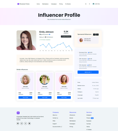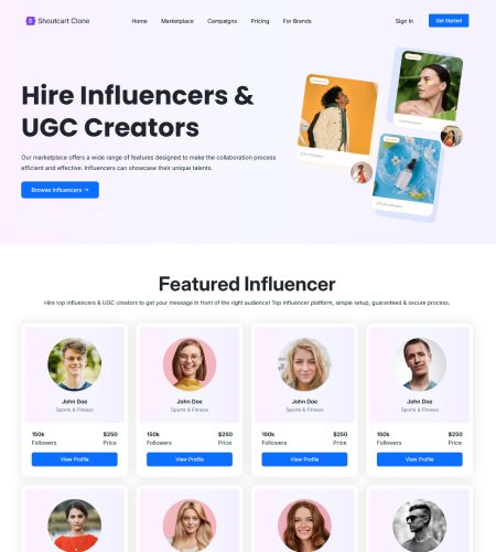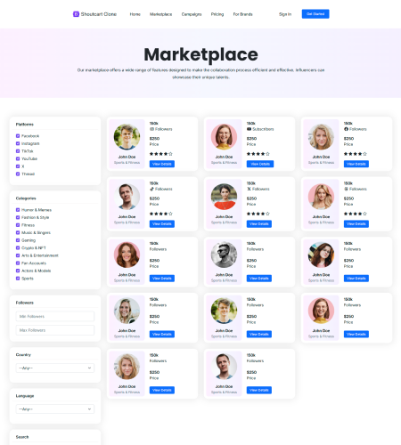 A Complete White-Label Platform Connecting Brands with Social Media Influencers for Paid Shoutouts, Sponsorships, and Content Creation.